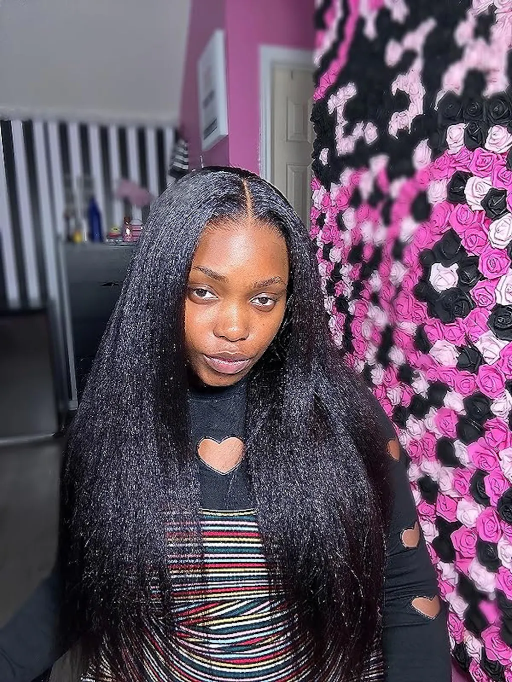 This wig features a 4x4 or 5x5 kinky straight closure design with HD transparent lace, providing a seamless and natural-looking hairline that blends perfectly with your skin tone.
