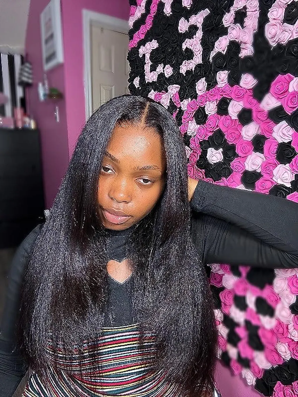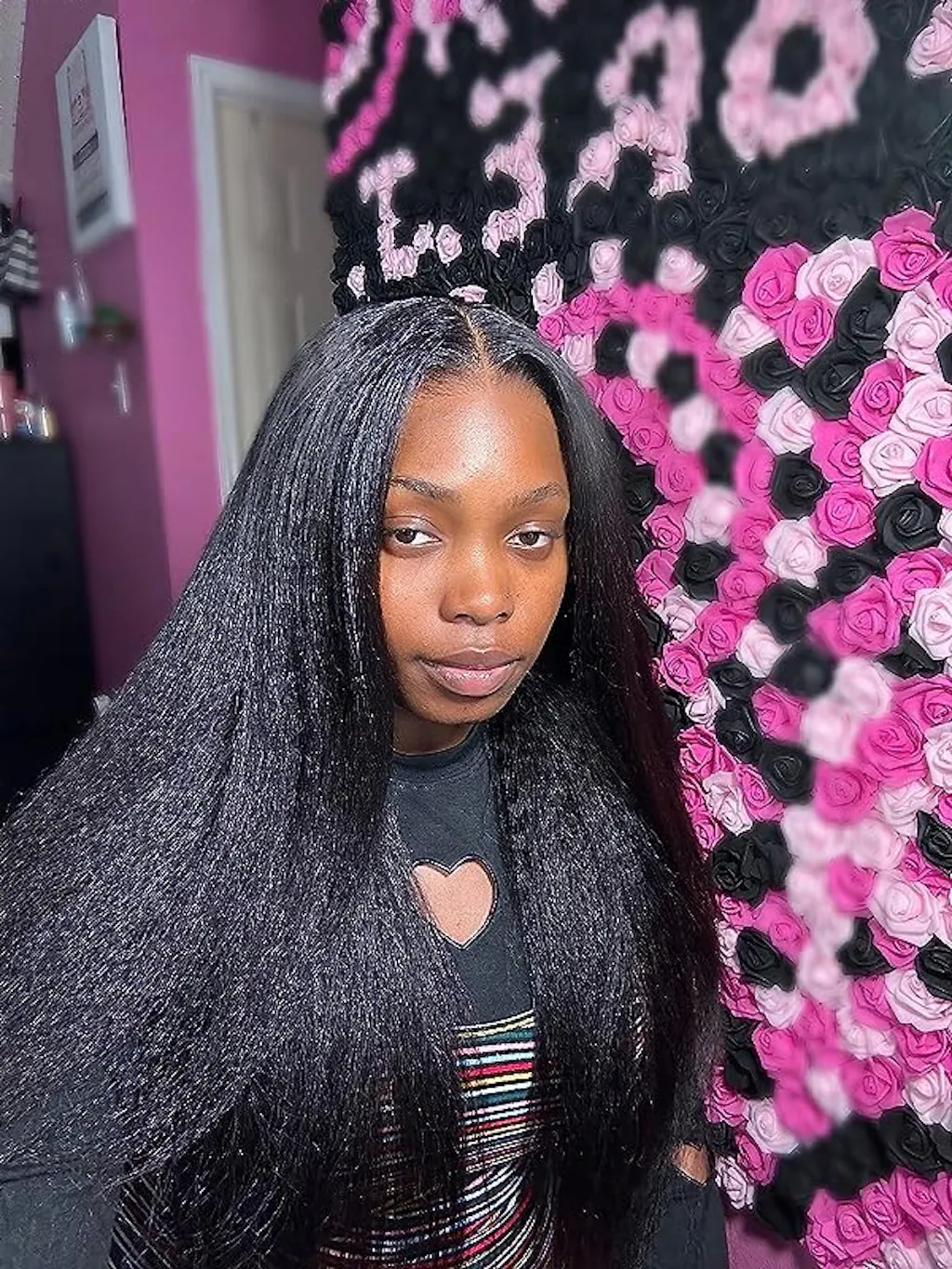 The ALIGLOSSY Pre Cut Wear Go Glueless Kinky Straight Closure Wig is beginner-friendly, making it suitable for those new to wearing wigs, providing a comfortable and stylish option for your desired kinky straight hairstyle.