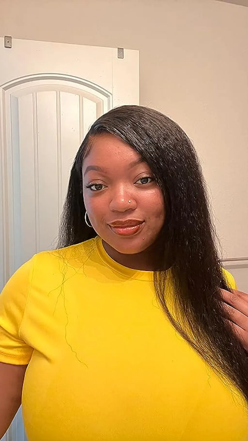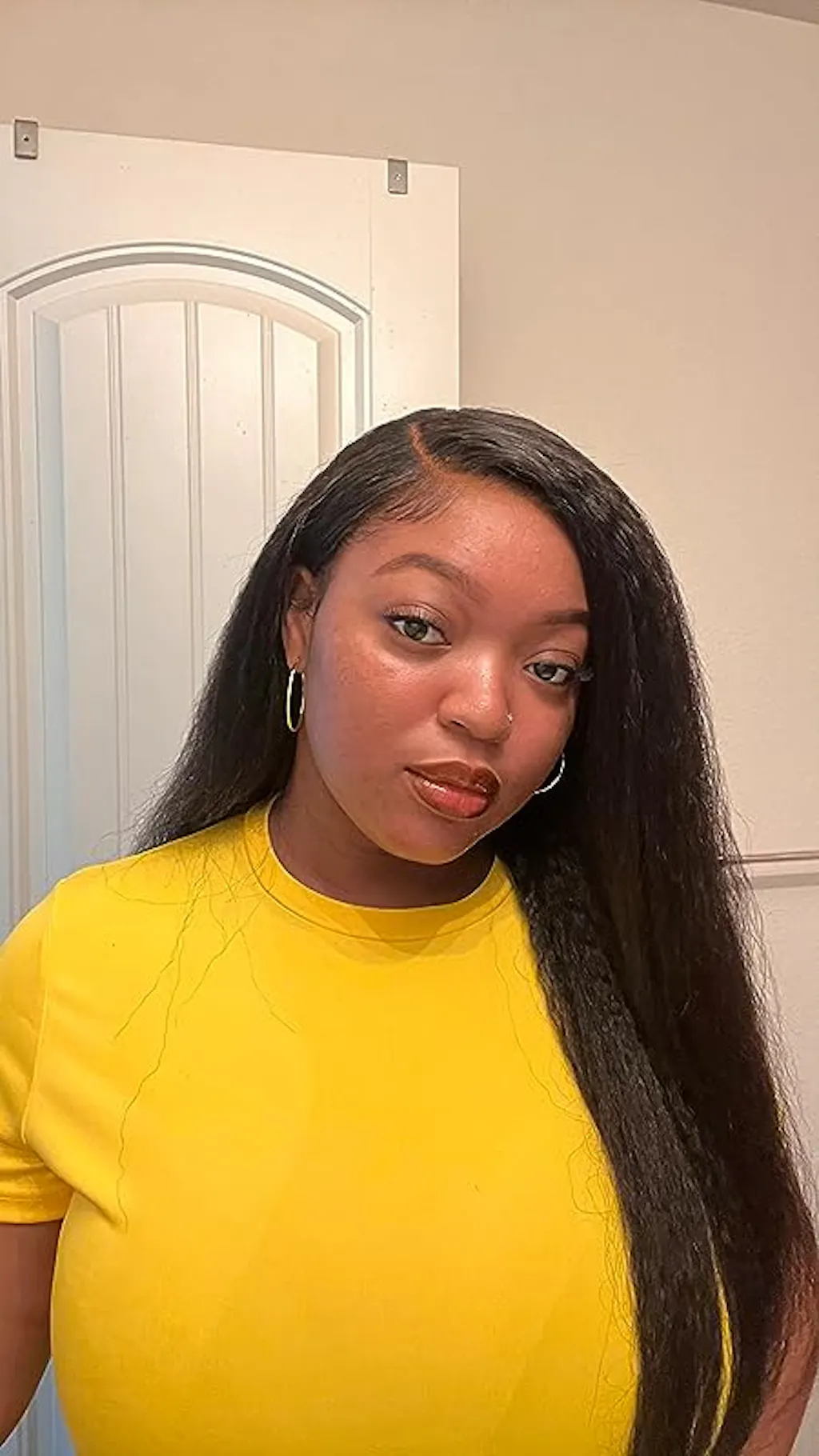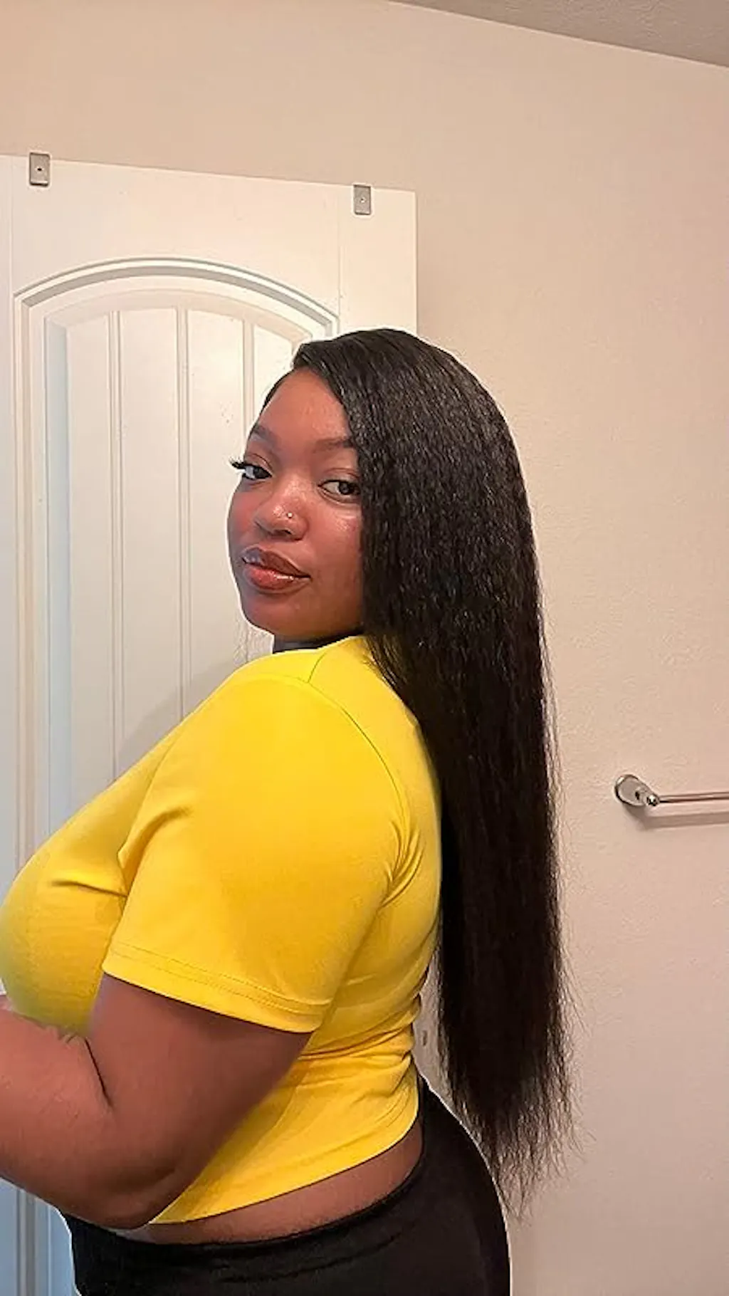 The ALIGLOSSY Pre Cut Wear Go Glueless Kinky Straight Closure Wig offers a convenient and beginner-friendly solution for achieving a stylish and sleek kinky straight hairstyle.