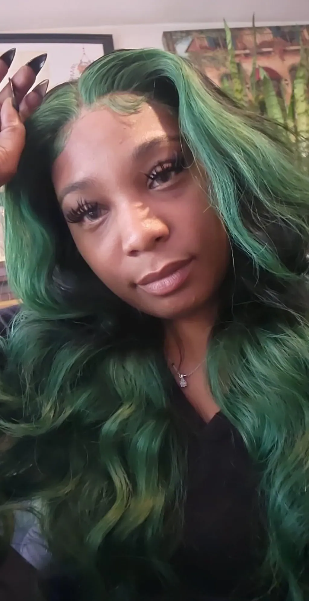 | Wig Color | Black Green Color |