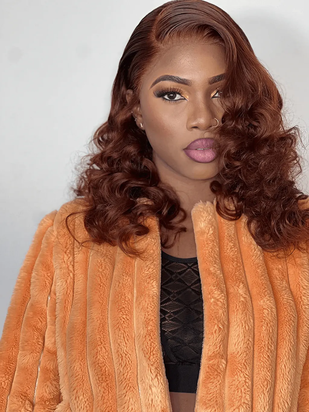 The ALIGLOSSY 13X4 Reddish Brown HD Transparent Body Wave Lace Front Wig #33 is perfect for those who want to embrace their natural waves and add a touch of color, suitable for various occasions where you want to make a bold and fashionable statement.